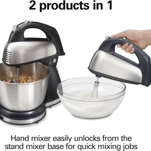 Hamilton Beach Classic Stand and Hand Mixer, 4 Quarts, 6 Speeds with QuickBurst, Bowl Rest, 290 Watts Peak Power, Black and Stainless